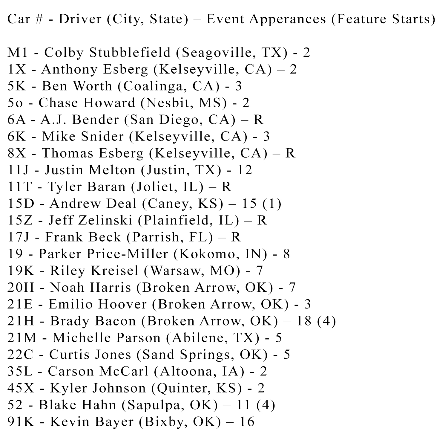 Chili Bowl Nationals On Twitter Chilibowl2022 So Far 155 Entries 8 Tba Including 26 A Feature Starters 30 Rookies And 2 Former Champions From 121 Cities 30 States And 3 Countries Usa Aust